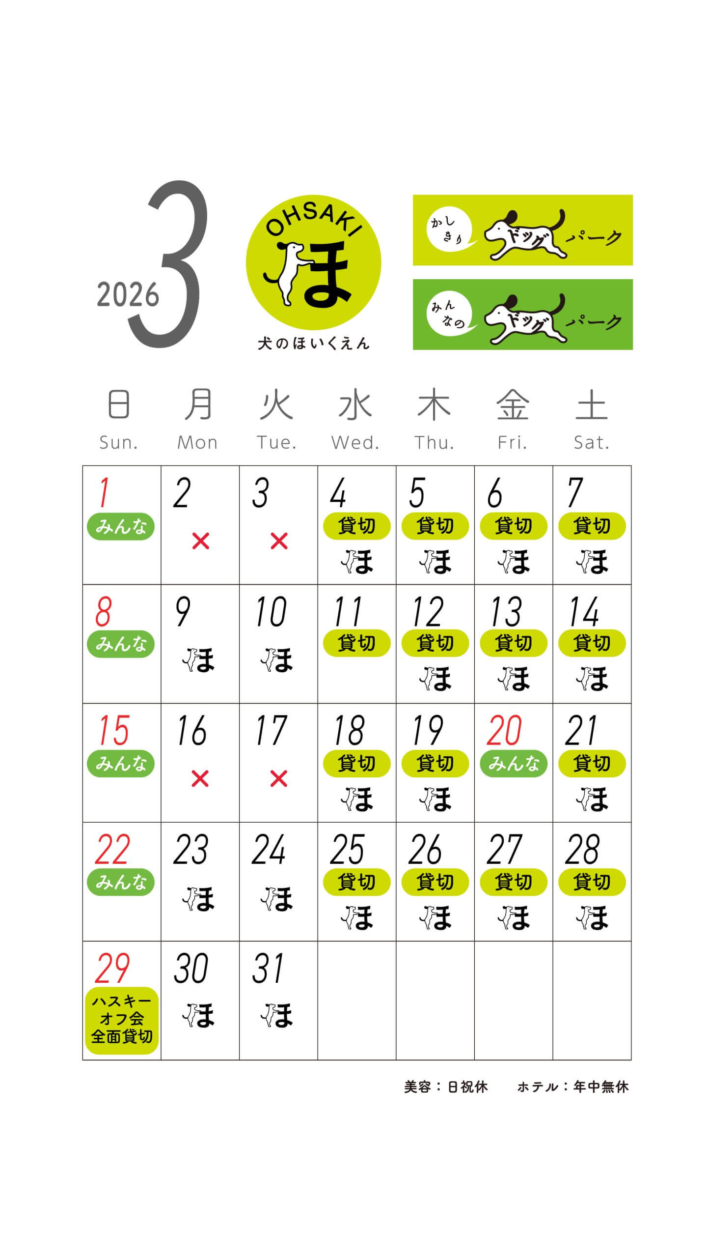 スルーラブおおさき店 パーク・ほいくえんカレンダー